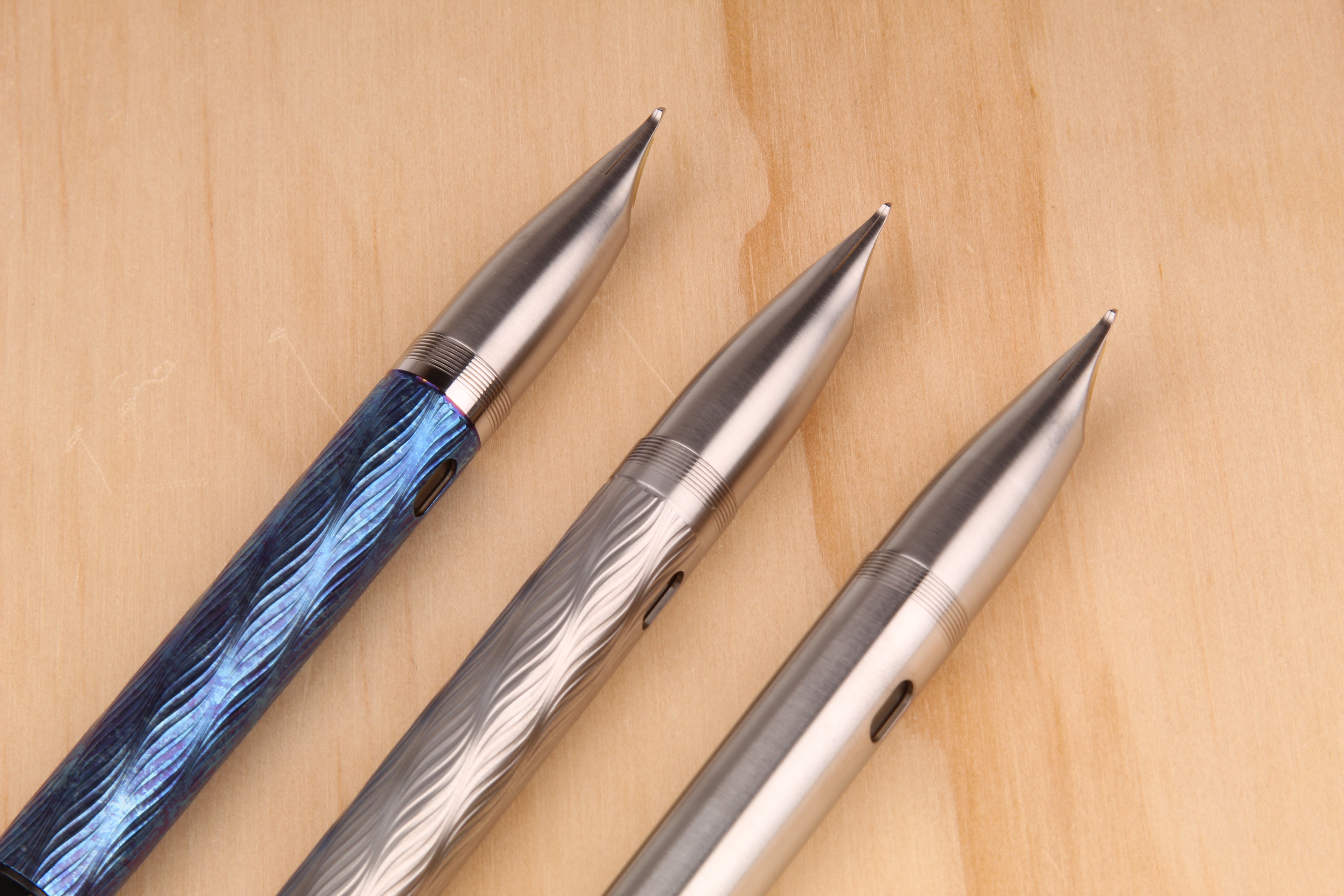 For the past 3 years we have been manufacturing our own in house Monoc nibs from solid titanium in our Philadelphia based studio. When we launched that project we focused on pioneering our new innovative nib manufacturing method, machining a nib from solid stock, but also wanted to honor all the pens we had made to date with the ability to upgrade their nib to our new Monoc design. Building off the processes we have honed from making the Monoc, the natural progression for us was to integrate the nib into the pen in a more seamless fashion. Initial Monoc designs were similar to the Monoc Evo, but they were just designs and ideas, far from the reality that we have come to today with our trade processes, machinery, team and new manufacturing facility in North Philadelphia. This is the first time we have been able to start with a blank sheet of paper, consider our processes we have been honing over the years as a workshop and truly design the most epic pen we could. A true tour du force.